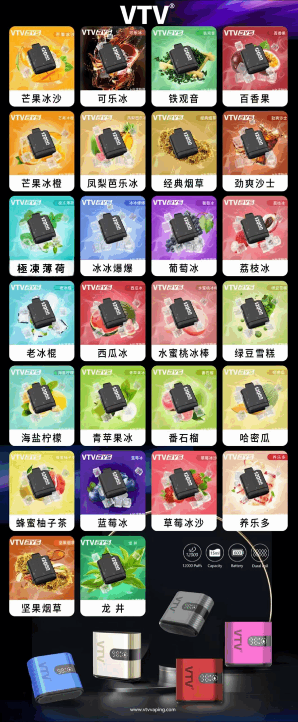2024年  VTV BYS 再度驚艷登場,全新15ML超大容量煙彈,1顆便相當於傳統煙彈7顆的持久享受,口味全面升級完美融合!細膩呈現口感讓香味在舌尖綻放,搭仔最新棉芯技術,抽至一半也依舊穩定順滑不漏油